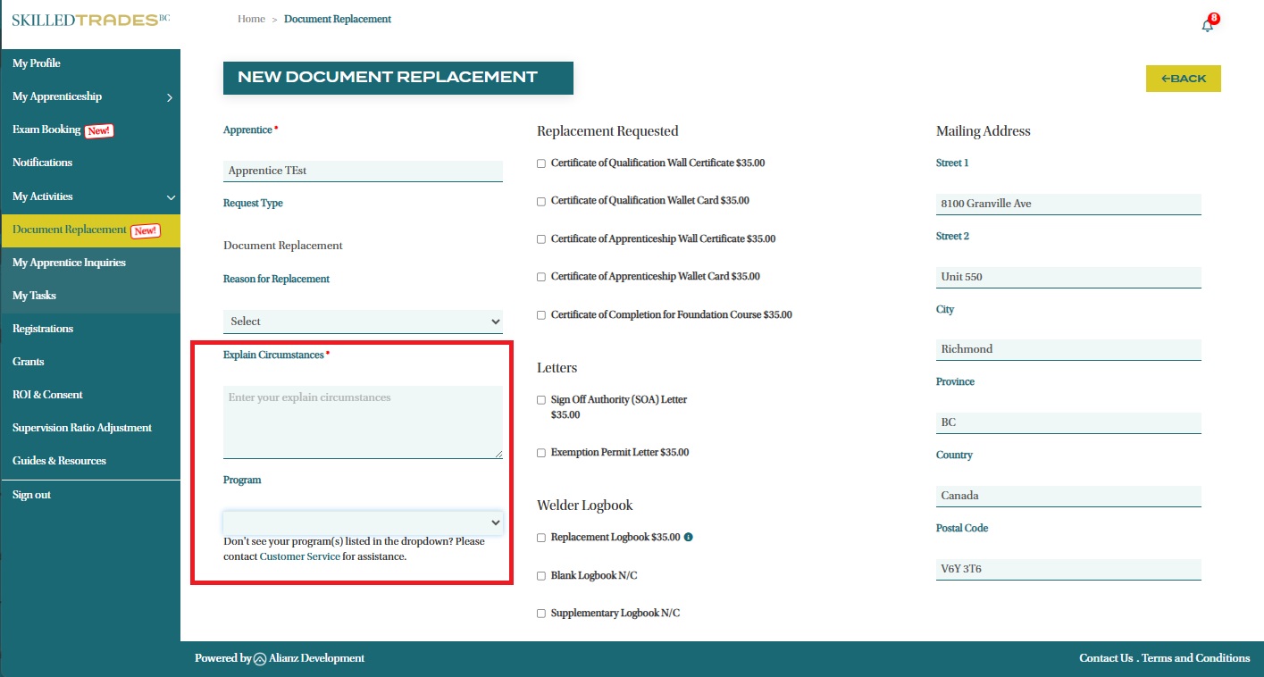 - If your replacement request requires a fee, you will be directed to the Checkout page to proceed with payment.