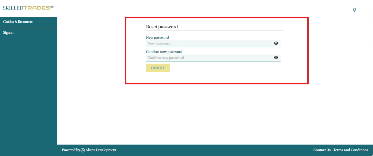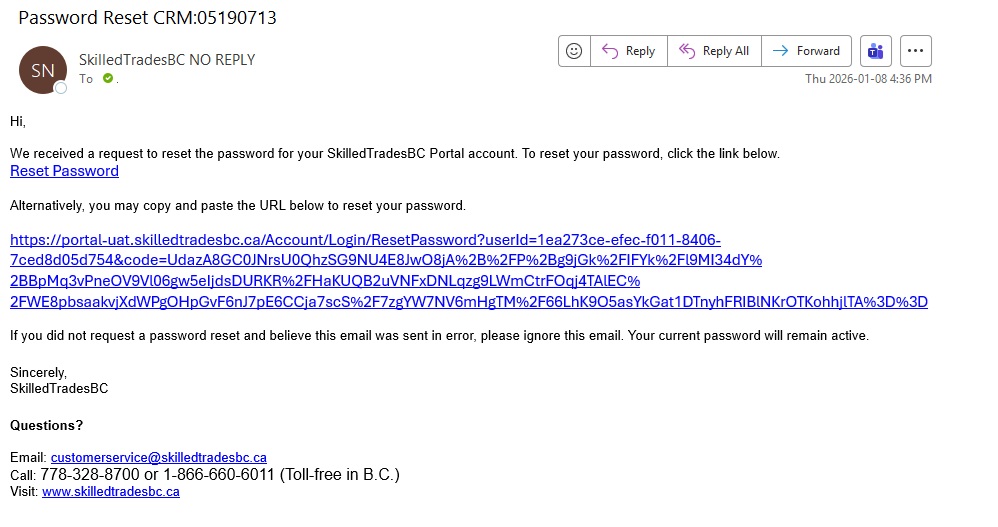 - You will receive an email from SkilledTradesBC with a link to reset your password. Click on this link to continue.